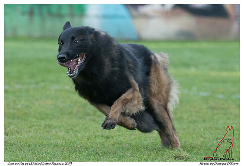 Hubert du Domaine d'Emyty transmet toutes les qualités qui nous importent : il est rapide, puissant, proche de son maître et solide dans son caractère. Les tests ADN sont visibles sur internet et il a été radiographié, Et enfin, ce qui ne gâte rien et nous rend plutôt fier, sa beauté (pour un chien de travail) semble faire l'unanimité.